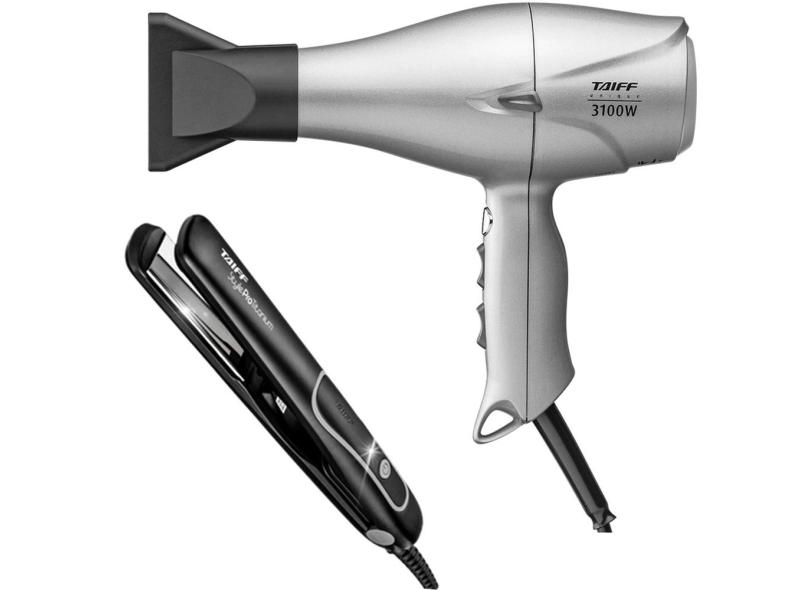 Kit taiff - secador de cabelo taiff unique 3100W 220V + prancha style prata pro titanium 230ºC bv