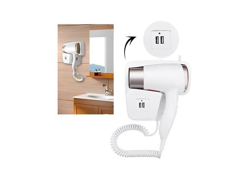 Secador Cabelo Suporte Parede Banheiro Hotel Doméstico 110V - Zem