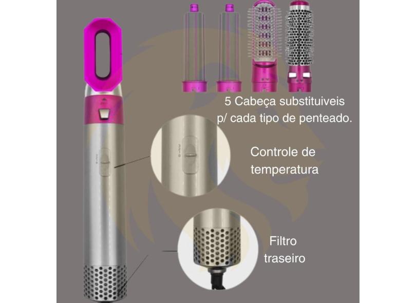 Secador De Cabelo Escova Alisadora 5Em1 Eletrico Profissiona