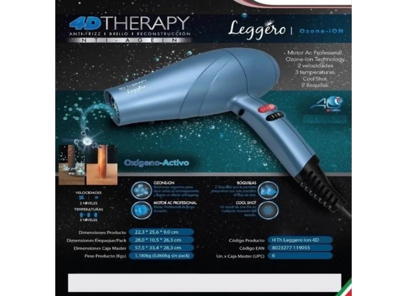 Secador De Cabelo Gama Italy Leggero 2100w Ions 4d Ar Frio e Quente Com Difusor Cachos