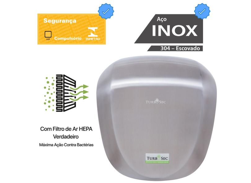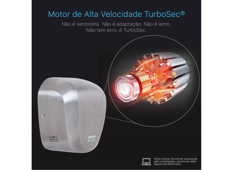 Secador de Mãos Automático TurboSec Aero Profissional Alta Velocidade Inox INMETRO