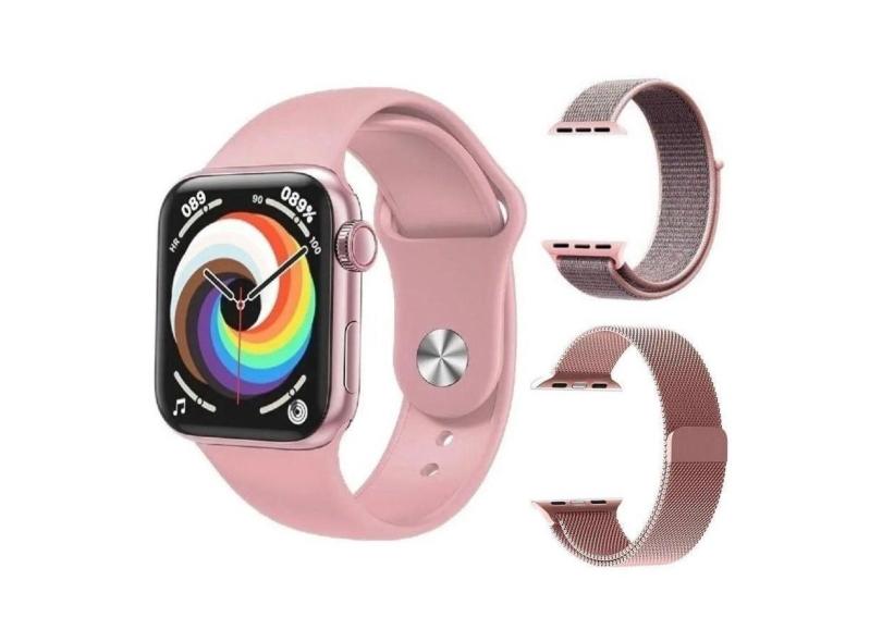 Relogio Smartwatch HW18 Rose Inteligente Com Duas Pulseiras Esportivo