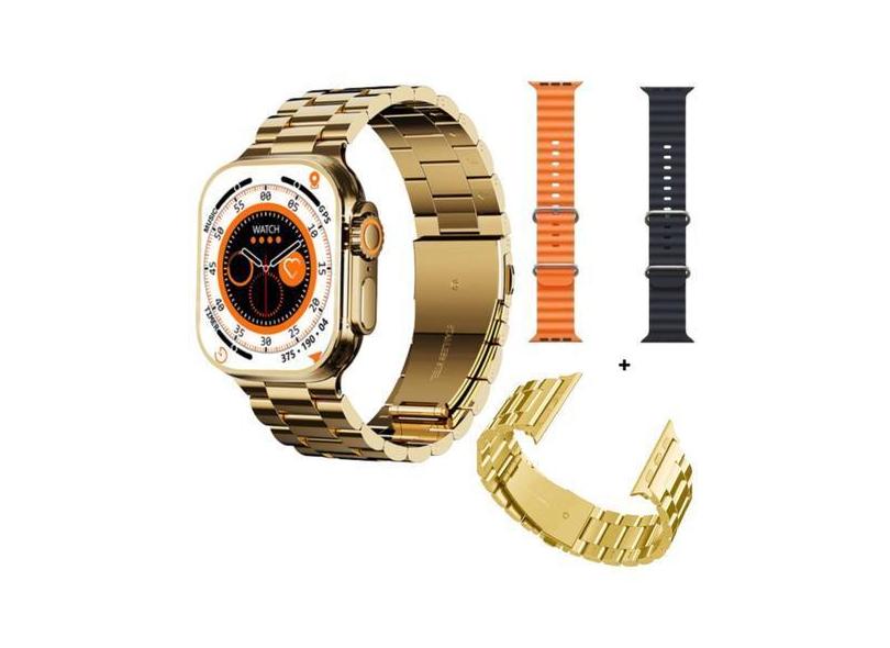 Relógio Smartwatch Masculino E Feminino Dourado 3 pulseiras Ws09 49mm