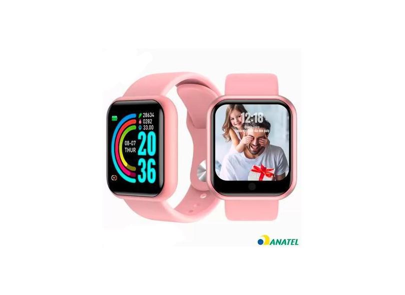 Relógio Smartwatch Y68 D20 Troca Imagem Da Tela Notificações - Rosa -