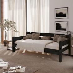 Sofá Cama 03 Lugares Madeira Maciça Reforçada Nemargi Preto