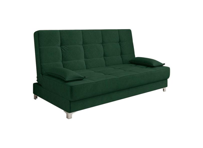 Sofá Cama 193 Cm Veludo Pés Plástico Cromado Verde Militar