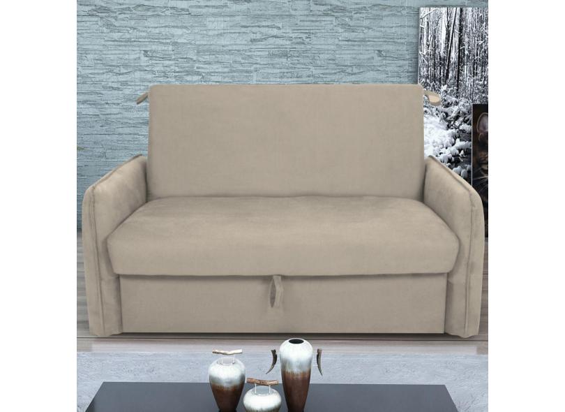 Sofá Cama 2 Lugares Com Baú Fabian Suede Bege