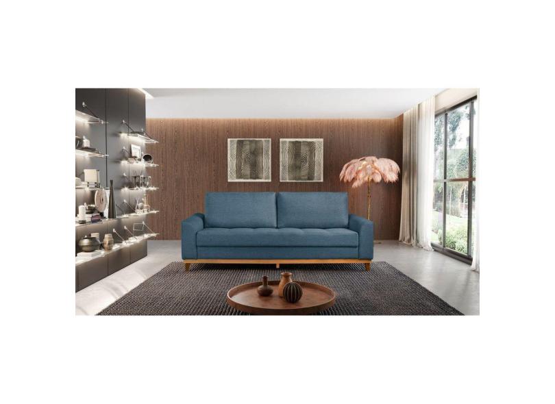 Sofá Cama 3 Lugares 224cm Alegra Linho Azul