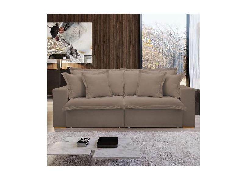 Sofá Cama 3 Lugares Arizona Retrátil Veludo Bege Escuro - Celflex