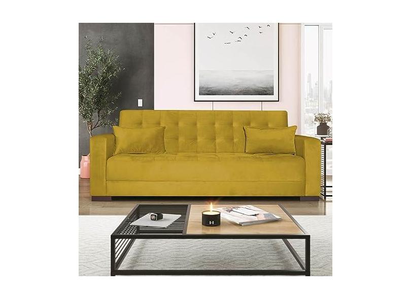 Sofá Cama 3 Lugares Jobim Suede Amarelo - Amarena Móveis