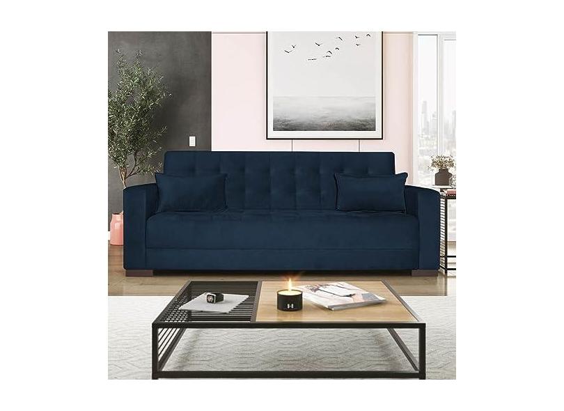 Sofá Cama 3 Lugares Jobim Suede Azul Marinho - Amarena Móveis
