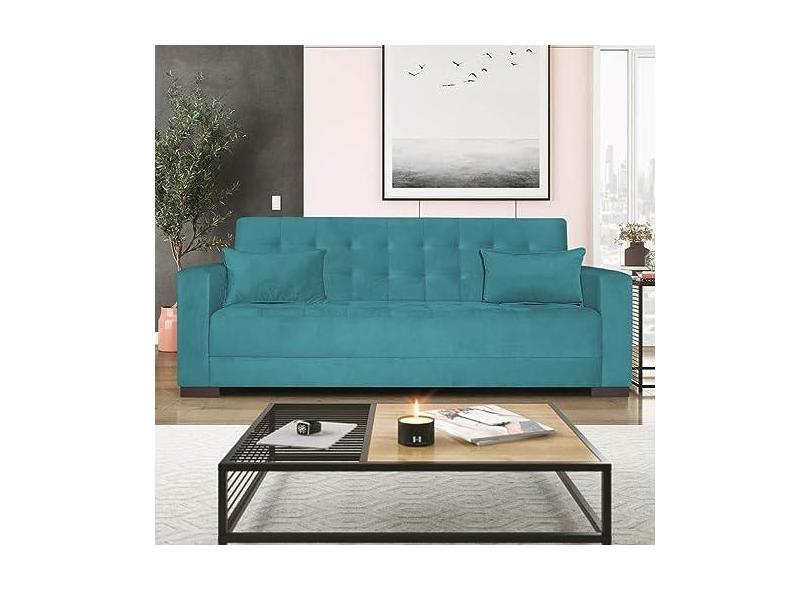 O menor preço encontrado no Brasil para Sofá Cama 3 Lugares Jobim Suede Azul Turquesa - Amarena Móveis atualmente é R$ 2.392,95.