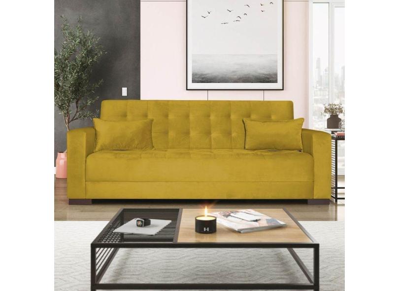 Sofá Cama 3 Lugares Jobim Suede - Doce Sonho Móveis Amarelo