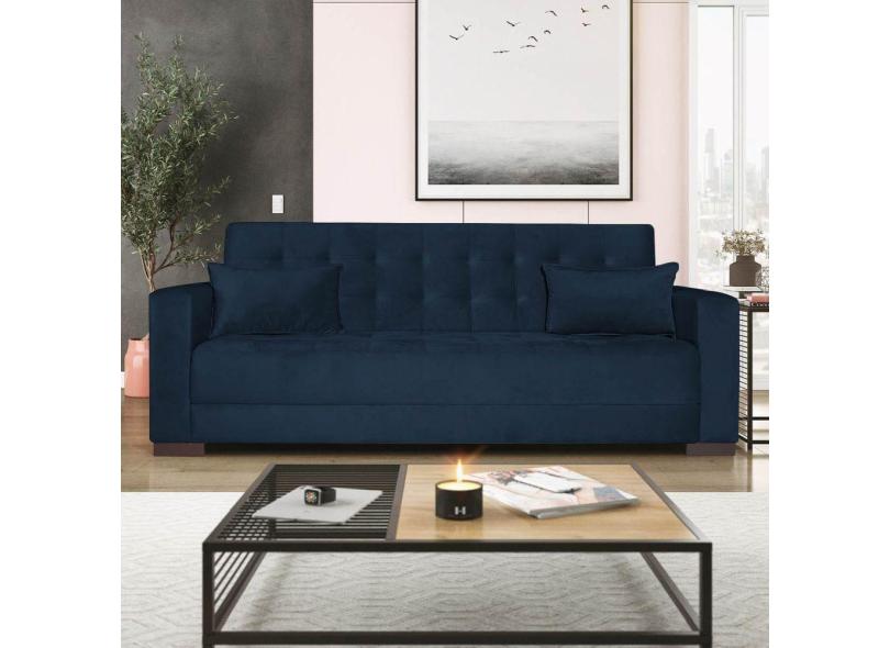O menor preço encontrado no Brasil para Sofá Cama 3 Lugares Jobim Suede - Doce Sonho Móveis Azul Marinho atualmente é R$ 2.158,85.