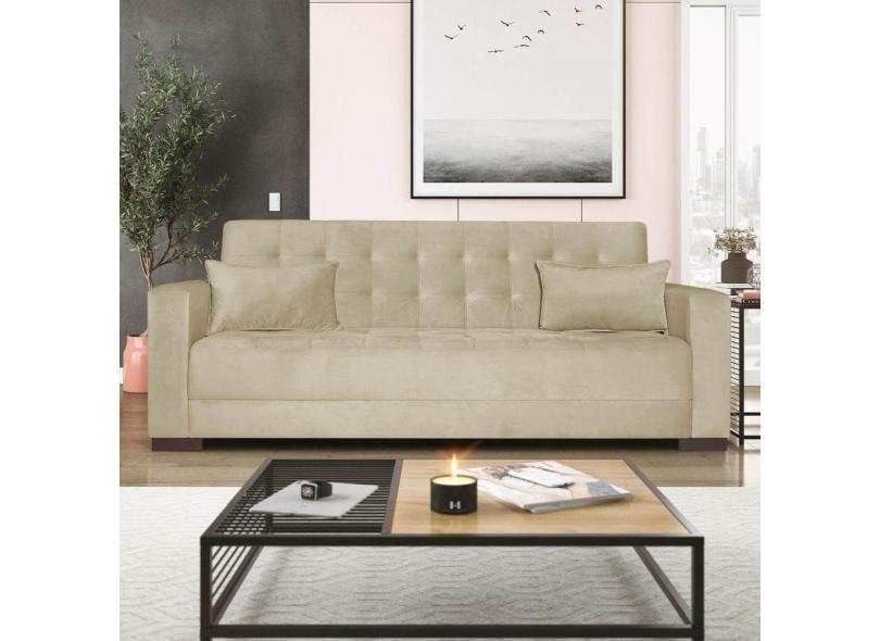 Sofá Cama 3 Lugares Jobim Suede - Doce Sonho Móveis Bege