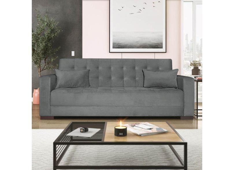 Sofá Cama 3 Lugares Jobim Suede - Doce Sonho Móveis Cinza