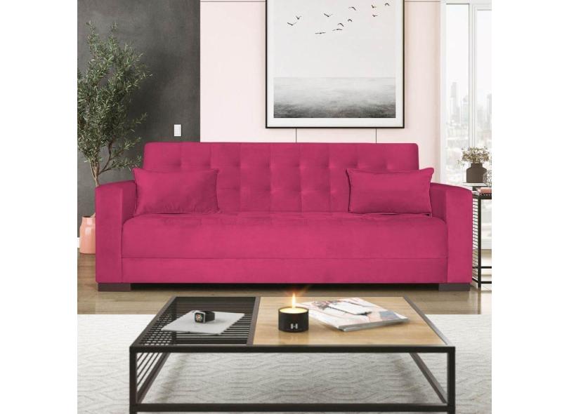 Sofá Cama 3 Lugares Jobim Suede - Doce Sonho Móveis Pink