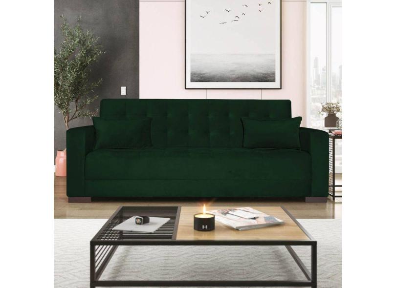 Sofá Cama 3 Lugares Jobim Suede - Doce Sonho Móveis Verde