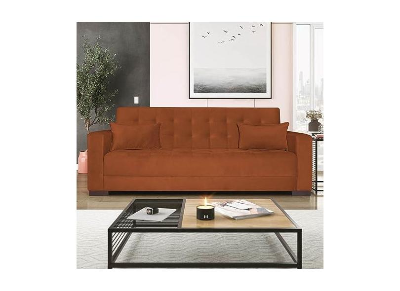Sofá Cama 3 Lugares Jobim Suede Terracota - Amarena Móveis