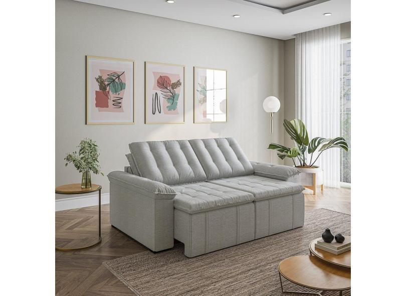 Sofá Cama 3 Lugares Retrátil Reclinável 2,00m Linho com Molas Palmeira CabeCasa MadeiraMadeira Prata