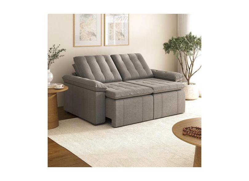 Sofá Cama 3 Lugares Retrátil Reclinável 2,00M Linho Com Molas Palmeira