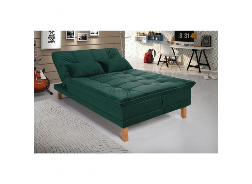 Sofá Cama Berlim 3 Lugares Império Reclinável Casal Pés Madeira Suede Verde 403