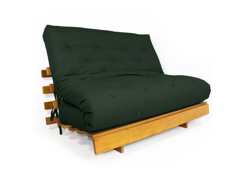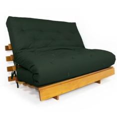 Sofá Cama Casal Futon Tokio Verde Militar Madeira Maciça Grapia Cor Natural