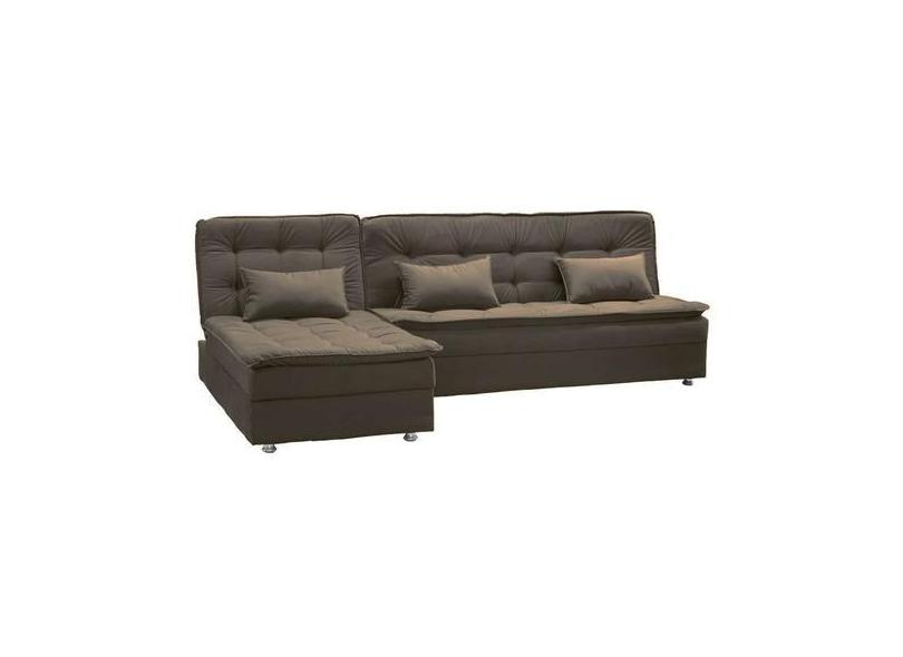 Sofá-Cama Casal Reclinável com Chaise Penélope Veludo Marrom Claro - M