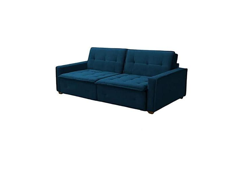 Sofa Cama Casal Veludo Azul Lux Filadélfia REC ESTOFADOS