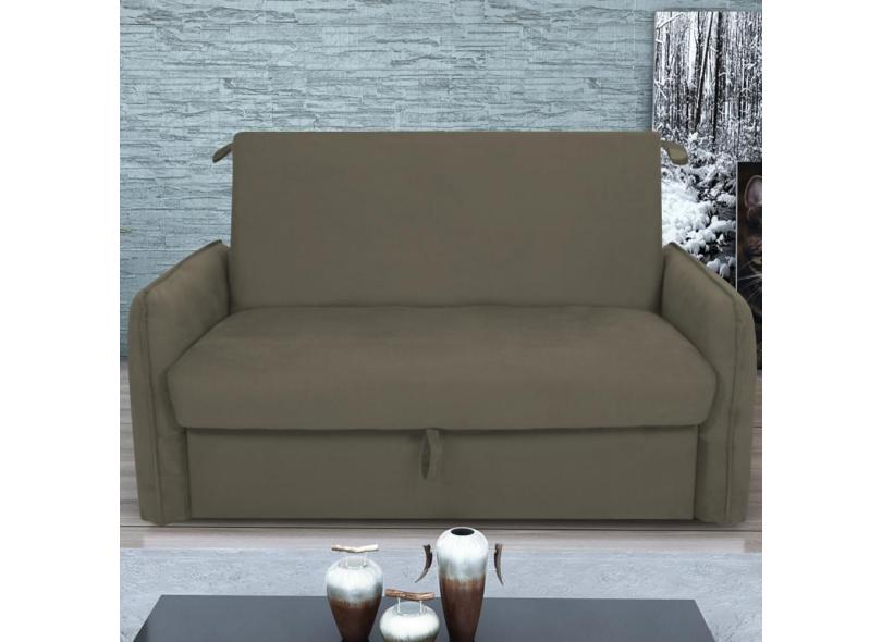 Sofá Cama Com Baú 2 Lugares Ethan Suede Cappuccino