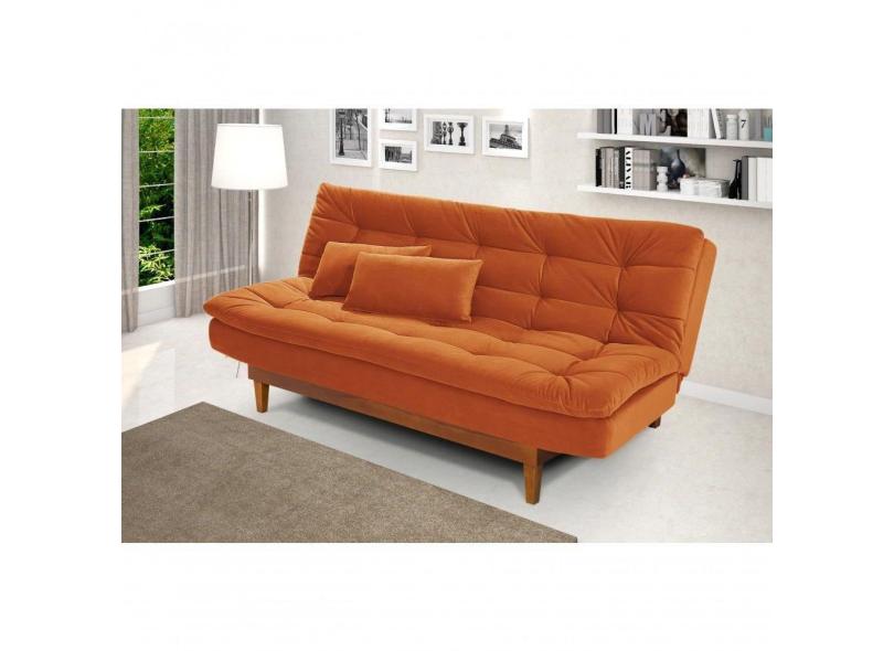 Sofá Cama Dubai 3 Lugares Império Reclinável Casal Pés Madeira Espuma Especial D33 Terracota 174