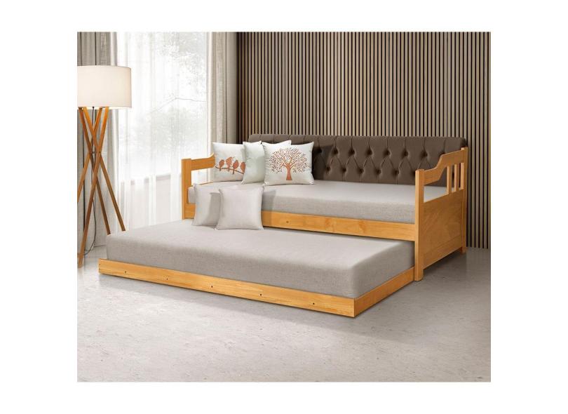 Sofá Cama Dublin Estofado Capitonê Veludo Marrom Madeira com Cama Auxiliar - Imbuia