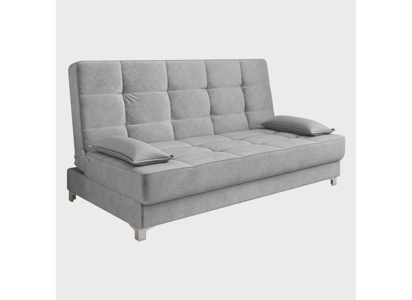 Sofá Cama Equador 193 cm Encosto Reclinável Veludo Cinza Pés Plástico Cromado - D'Rossi