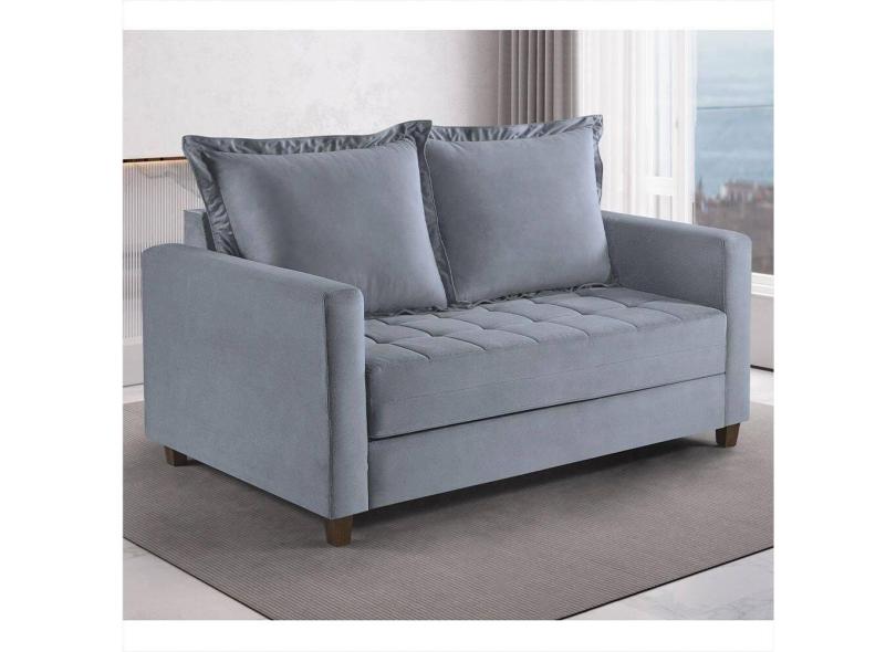 Sofa Cama Frisa Colchao Casal Talento Móveis Cinza/Castanho