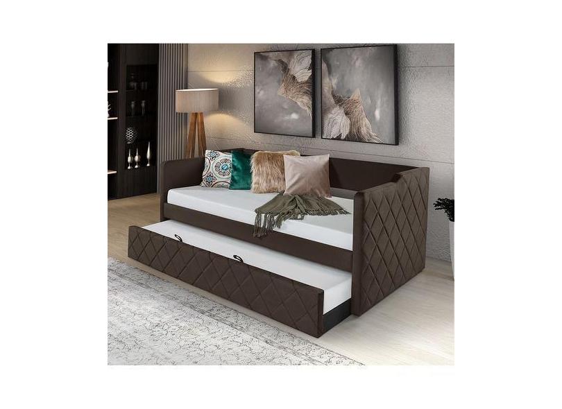 Sofá Cama Madeira Maciça Vintage Dubai Revestimento Veludo Marrom Pavi