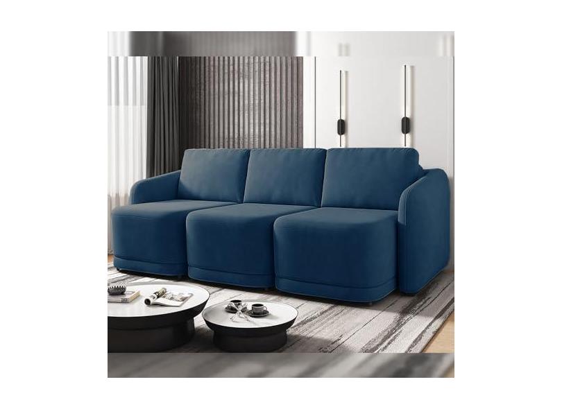 Sofá Cama Modulado Retrátil e Reclinável Decorativo Varsóvia 276cm Veludo Azul Marinho G33 - Gran Belo