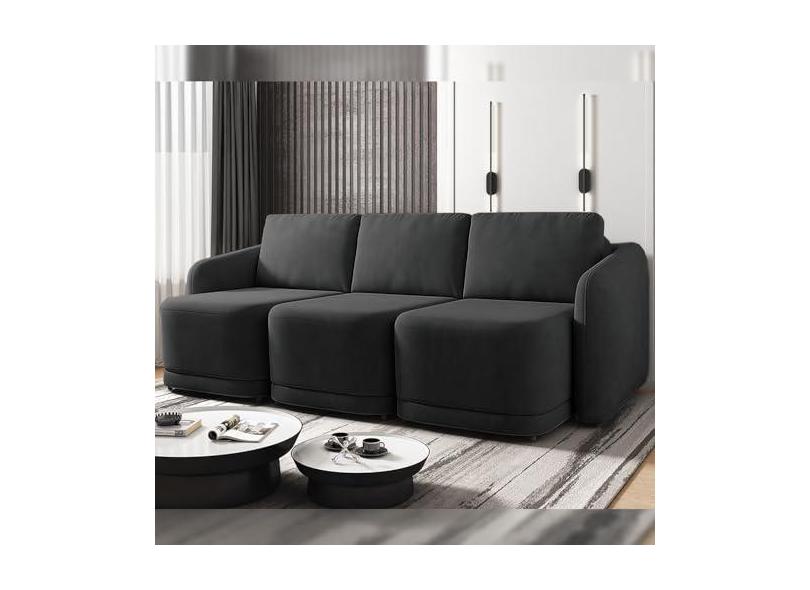 Sofá Cama Modulado Retrátil e Reclinável Decorativo Varsóvia 306cm Veludo Cinza Chumbo G33 - Gran Belo