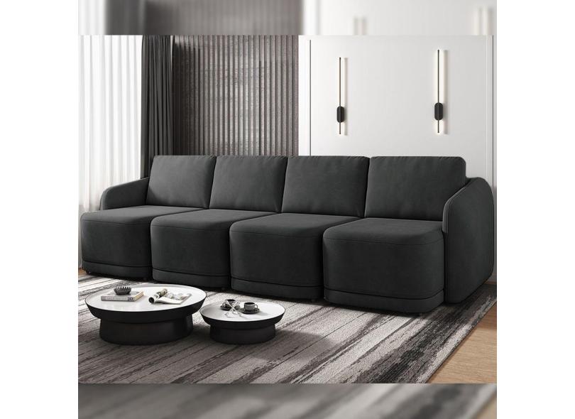 Sofá Cama Modulado Retrátil E Reclinável Varsóvia 356cm Veludo Cinza Chumbo G33 - Gran Belo