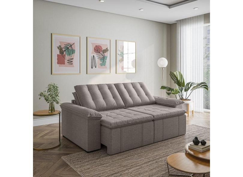 Sofá Cama Palmeira 3 Lugares Retrátil Reclinável 2,20m Linho com Molas CabeCasa MadeiraMadeira Marrom