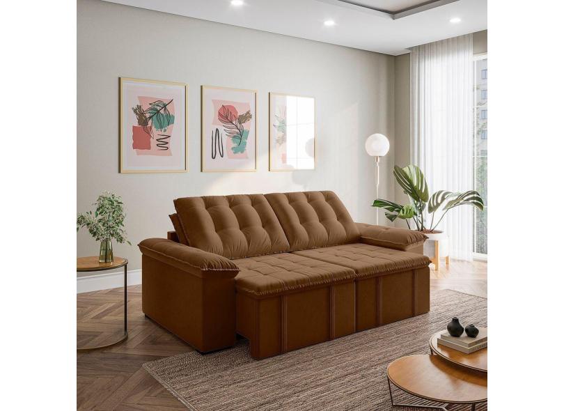 Sofá Cama Palmeira 3 Lugares Retrátil Reclinável 2,20m Veludo com Molas CabeCasa MadeiraMadeira Marrom