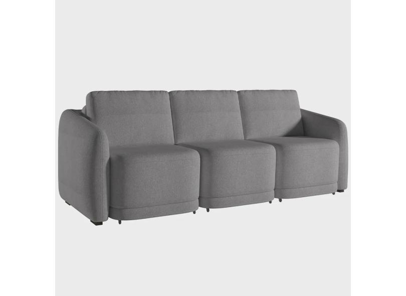 Sofá Cama para Sala de Estar 3 Lugares 306cm Montserrat K01 Bouclê Cinza - Lyam Decor