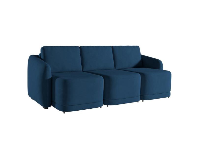 Sofá Cama para Sala de Estar 3 Lugares 306cm Montserrat K01 Veludo Azul Marinho - Lyam Decor