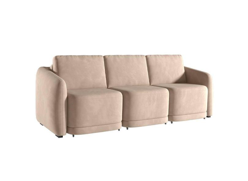 Sofá Cama para Sala de Estar 3 Lugares 306cm Montserrat K01 Veludo Bege - Lyam Decor