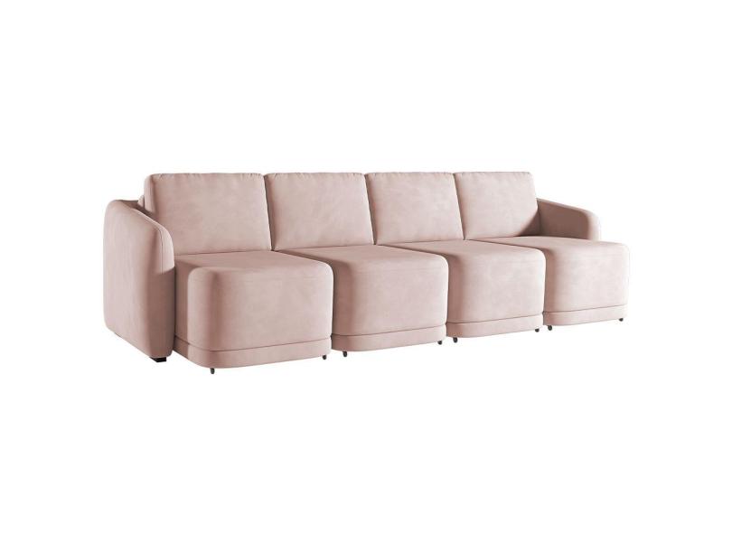 Sofá Cama para Sala de Estar 4 Lugares 356cm Montserrat K01 Veludo Rosê - Lyam Decor