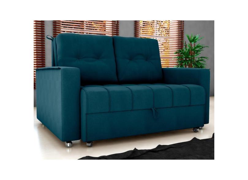 Sofá Cama Para Sala De Estar Cross Veludo Maserati Azul