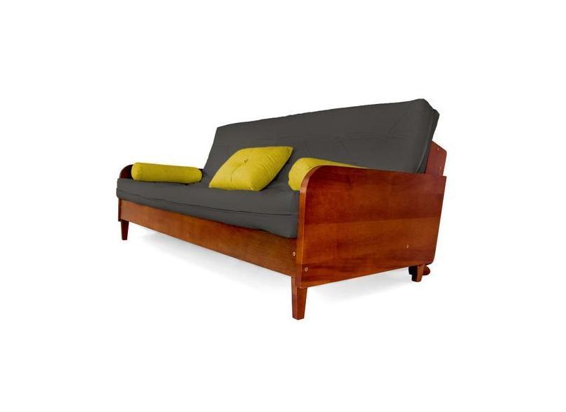 Sofá Cama Paris Acquablock Chumbo Madeira Maciça Cor Imbuia - R9 Desig