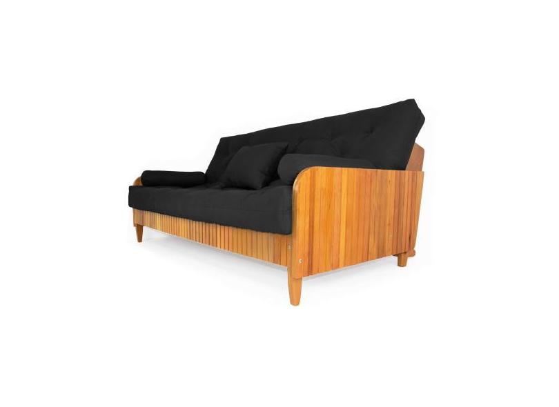 Sofá Cama Paris Ripado Sarja Preto Madeira Nobre - R9 Design Futon