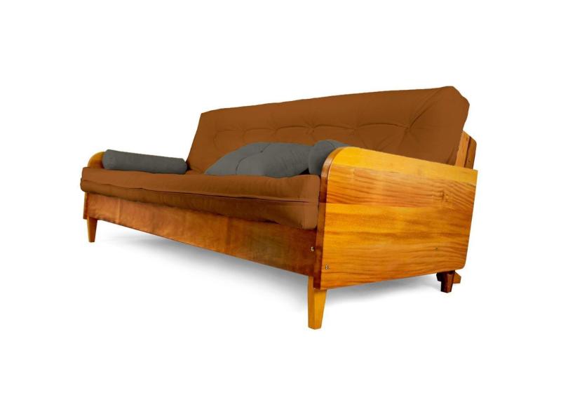 Sofá Cama Paris Sarja Caramelo Madeira Maciça Alto Padrão