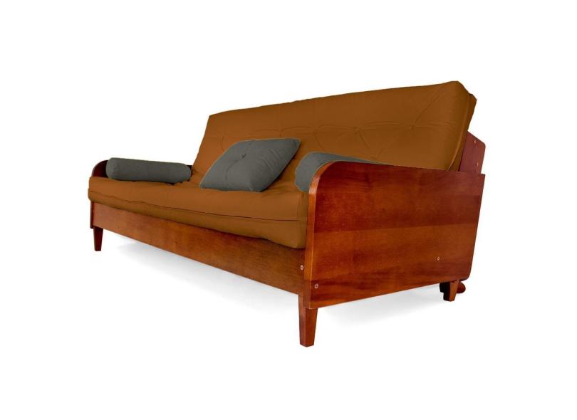 Sofá Cama Paris Sarja Caramelo Madeira Nobre Cor Imbuia