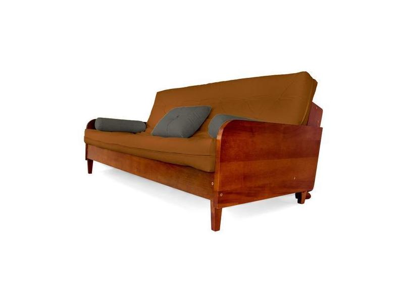 Sofá Cama Paris Sarja Caramelo Madeira Nobre Cor Imbuia - R9 Design Fu